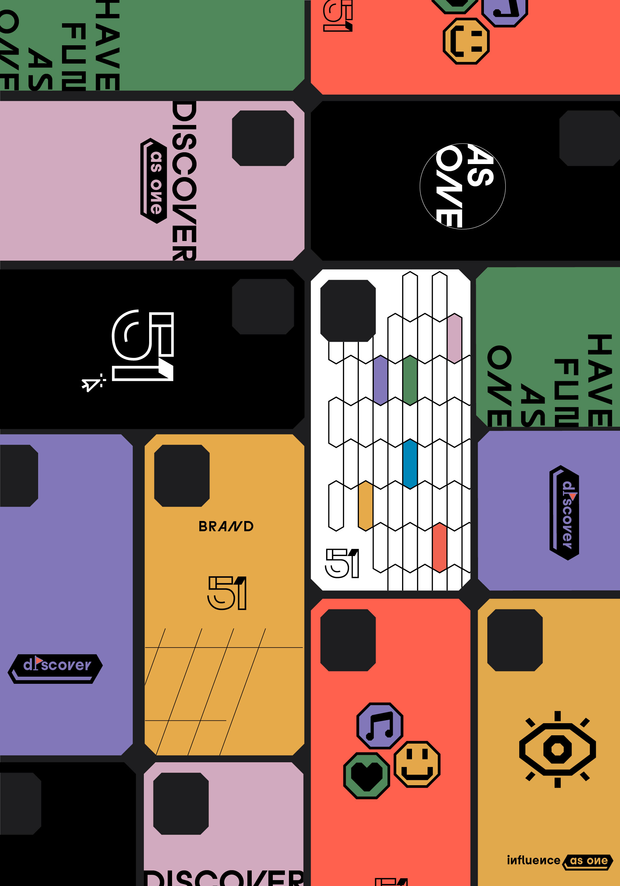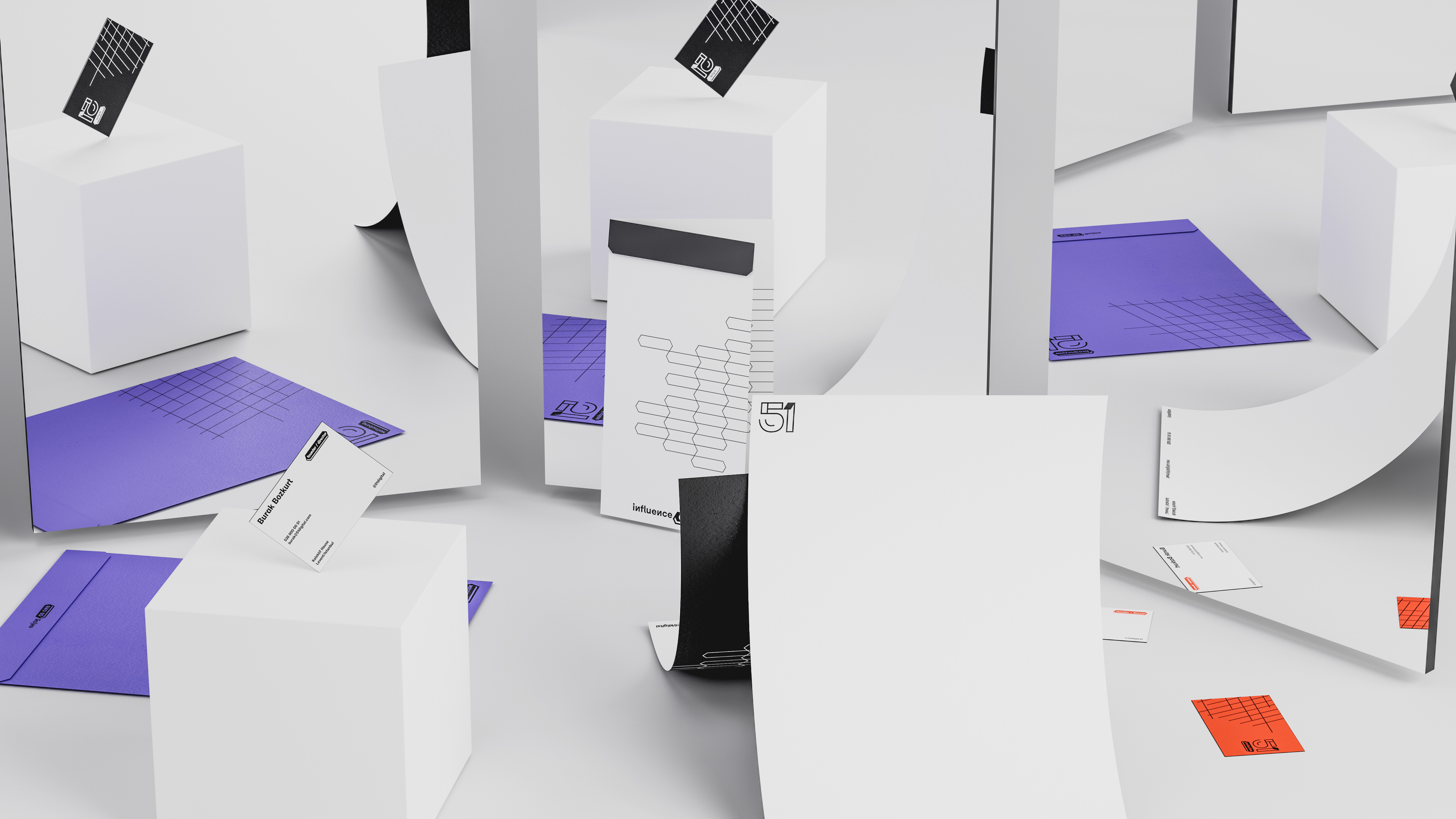 51 Digital reached out to us for the first time since its establishment to renew its brand identity. We went through a very close and fantastic production process to position the new generation of influencers it represents and to shape the future of the brand. We created a young, dynamic, and attention-grabbing system. We found the mysterious and profound meaning of the mirror very suitable for the brand's future vision. The hypergraphic principles of the 1960s were reinterpreted for the brand's visual identity.
